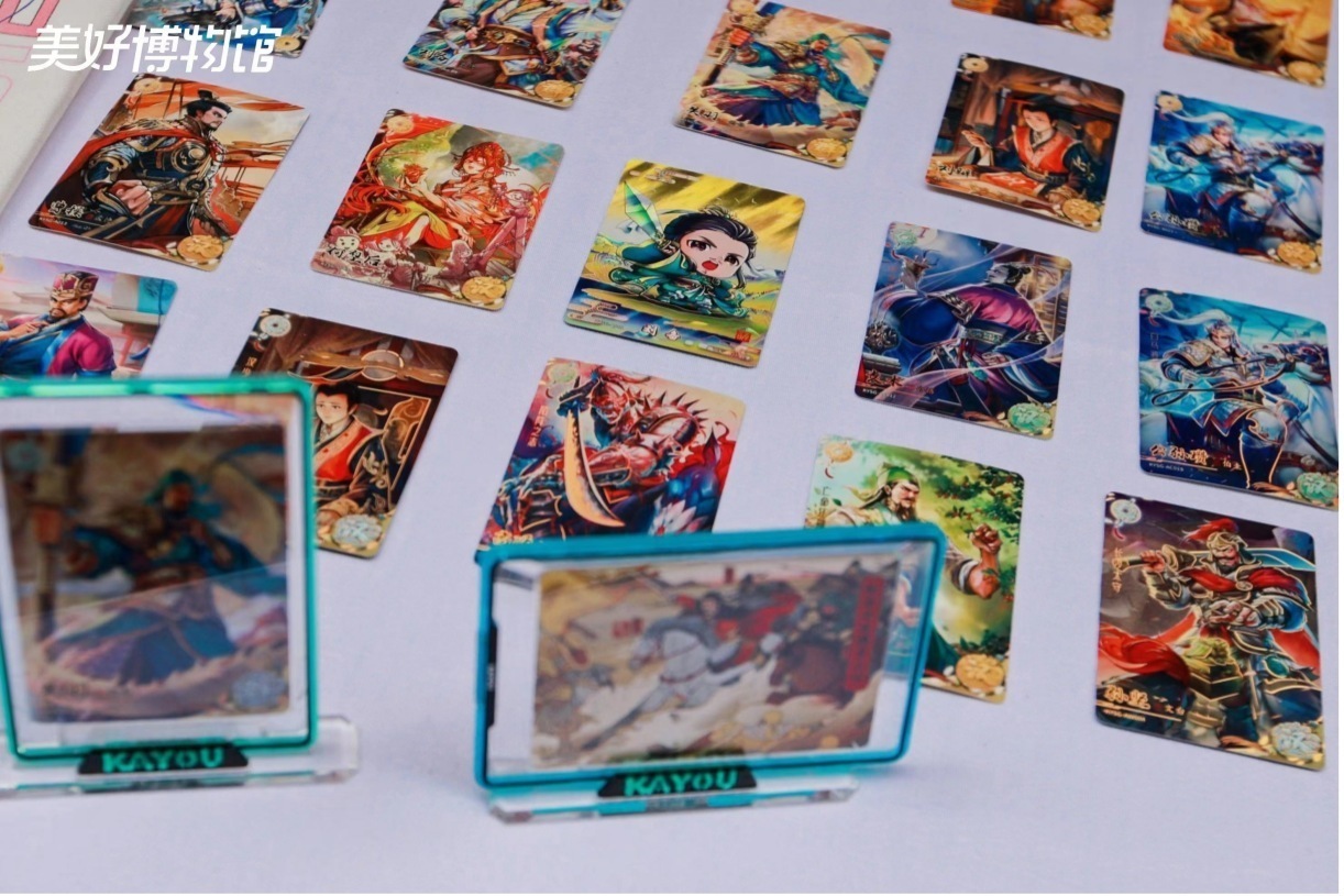 造纸术和印刷术曾作为中国文化的品牌名片远播四海,如今这两项技术在卡游“智造”的一张小小的纸片上又重现光彩。盲盒墙中的《卡游三国》凭借风趣的画风、耳熟能详的经典故事为蓝本,引来不少参观者拍照留念。