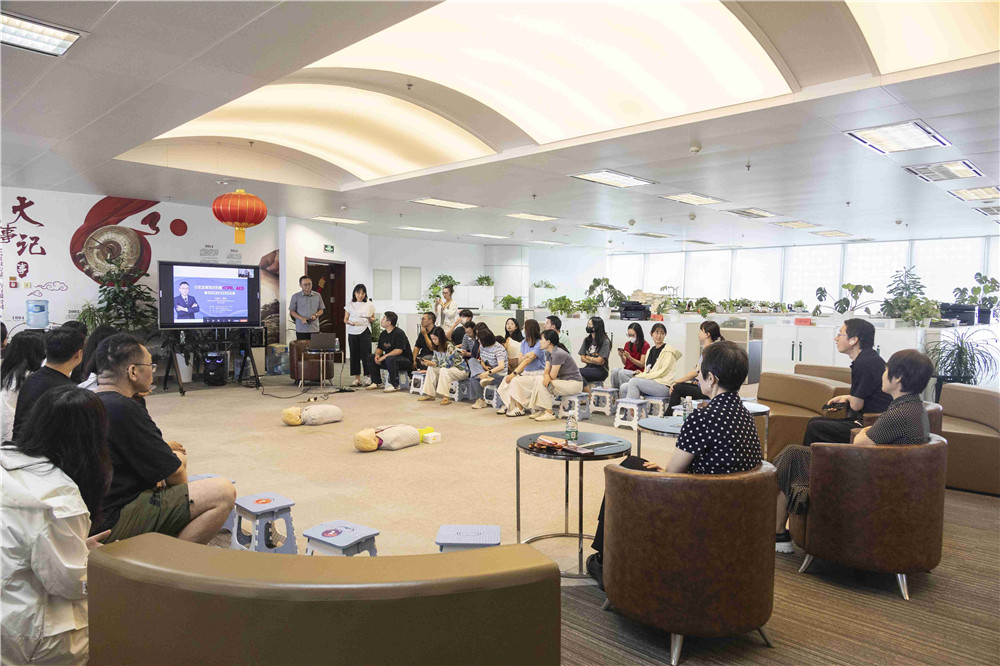 为了让公司员工了解掌握应急救护的基本知识和技能以及学习使用AED,7月23日下午,传媒广告公司邀请首都医科大学附属北京朝阳医院急诊医学中心副主任医师魏兵为员工开展日常急救知识培训。
